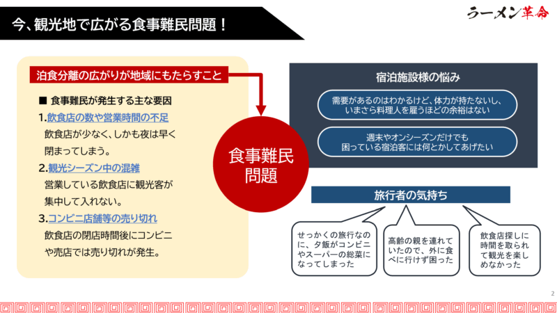 こうした宿泊施設向けに、旅ナカラボが営業のお手伝いをさせていただいている「電子レンジだけで簡単に本格ラーメンを提供できる画期的なシステム」をご案内します。